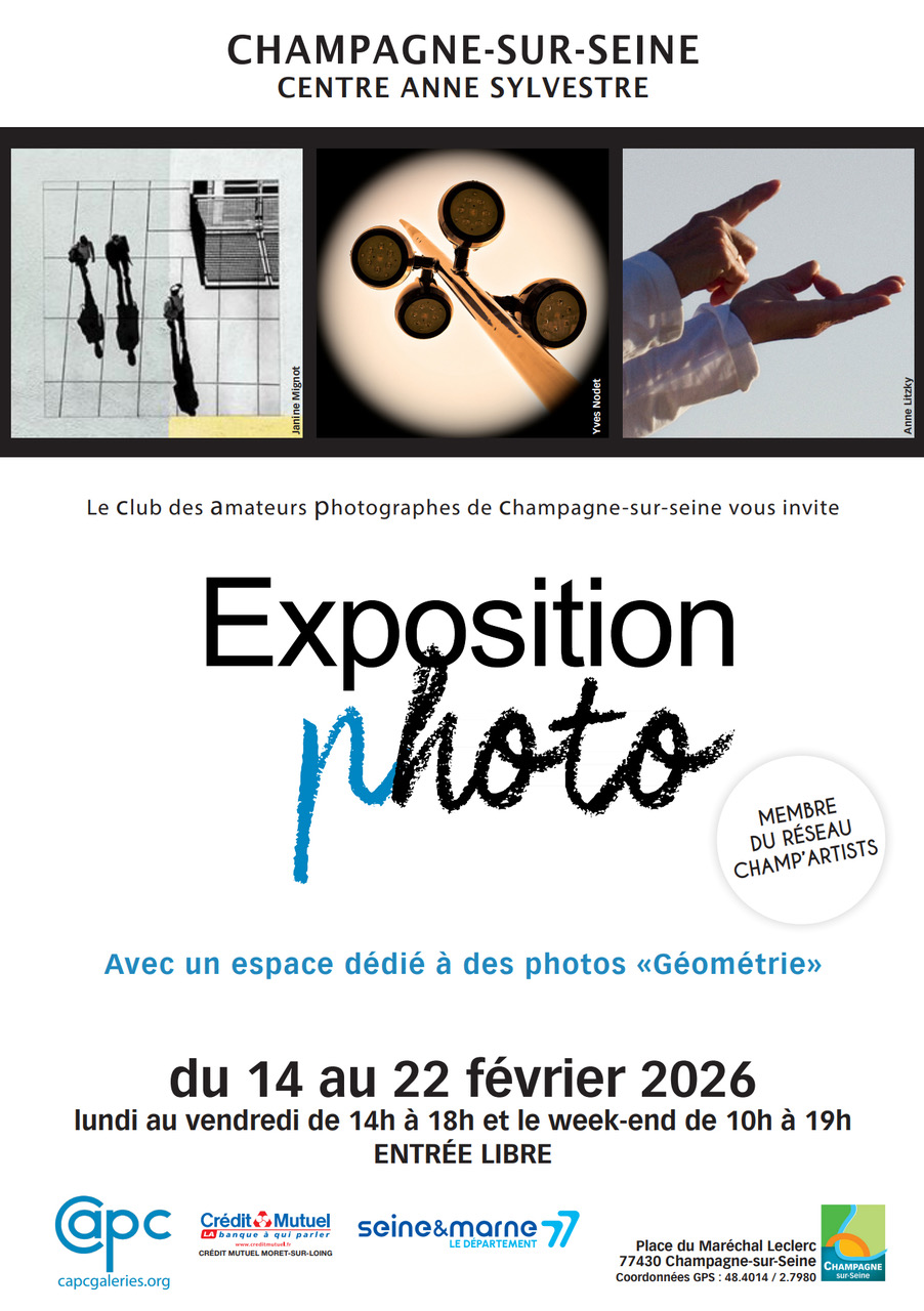 L’exposition annuelle de notre club a lieu du 14 au 22 février 2026 au Centre Anne Sylvestre à Champagne sur Seine, Place du Maréchal Leclerc.
